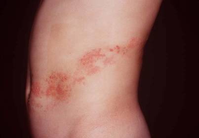 대상포진의 표면에 드러나는 발진의 형태는 다양합니다. 수두와 유사한 물집 형태로 발달하기도 하며 척추를 중심으로 신경 세포에 따라 띠 모양으로 발진이 나타나기도 합니다. 발진 후에는 공통적으로 물집이 생기고 고름이 나게 됩니다. 그리고 이렇게 생긴 물집과 고름은 딱딱하게 굳어 딱지를 형성합니다.