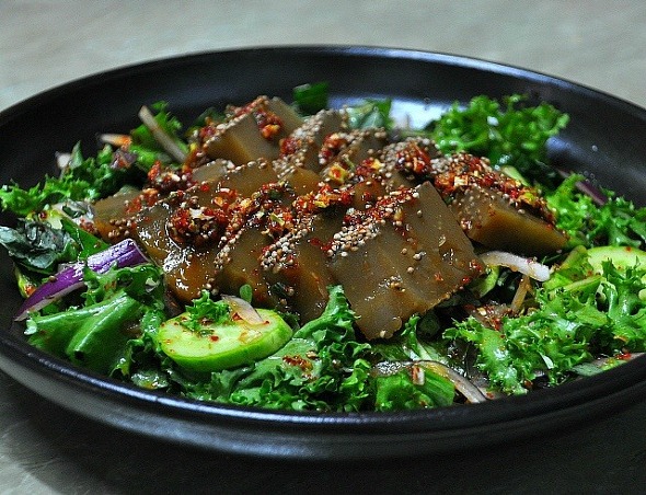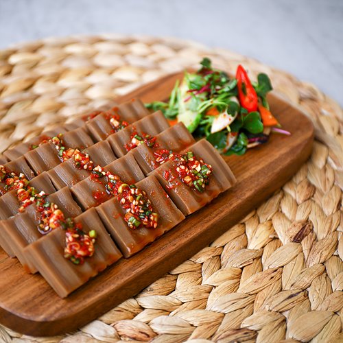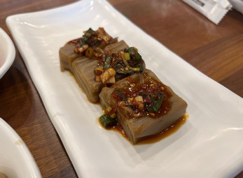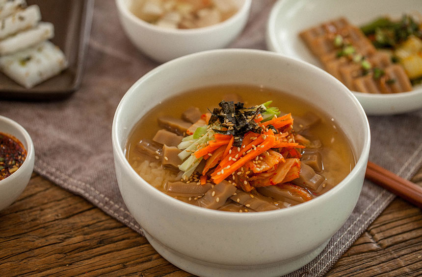 맛있게 쑤어진 묵은 양념장을 얹어 먹거나 묵사발로 만들어 먹을 수도 있습니다.