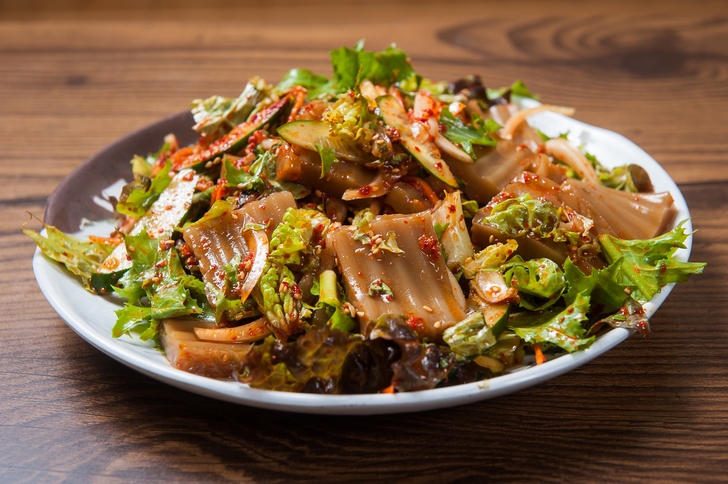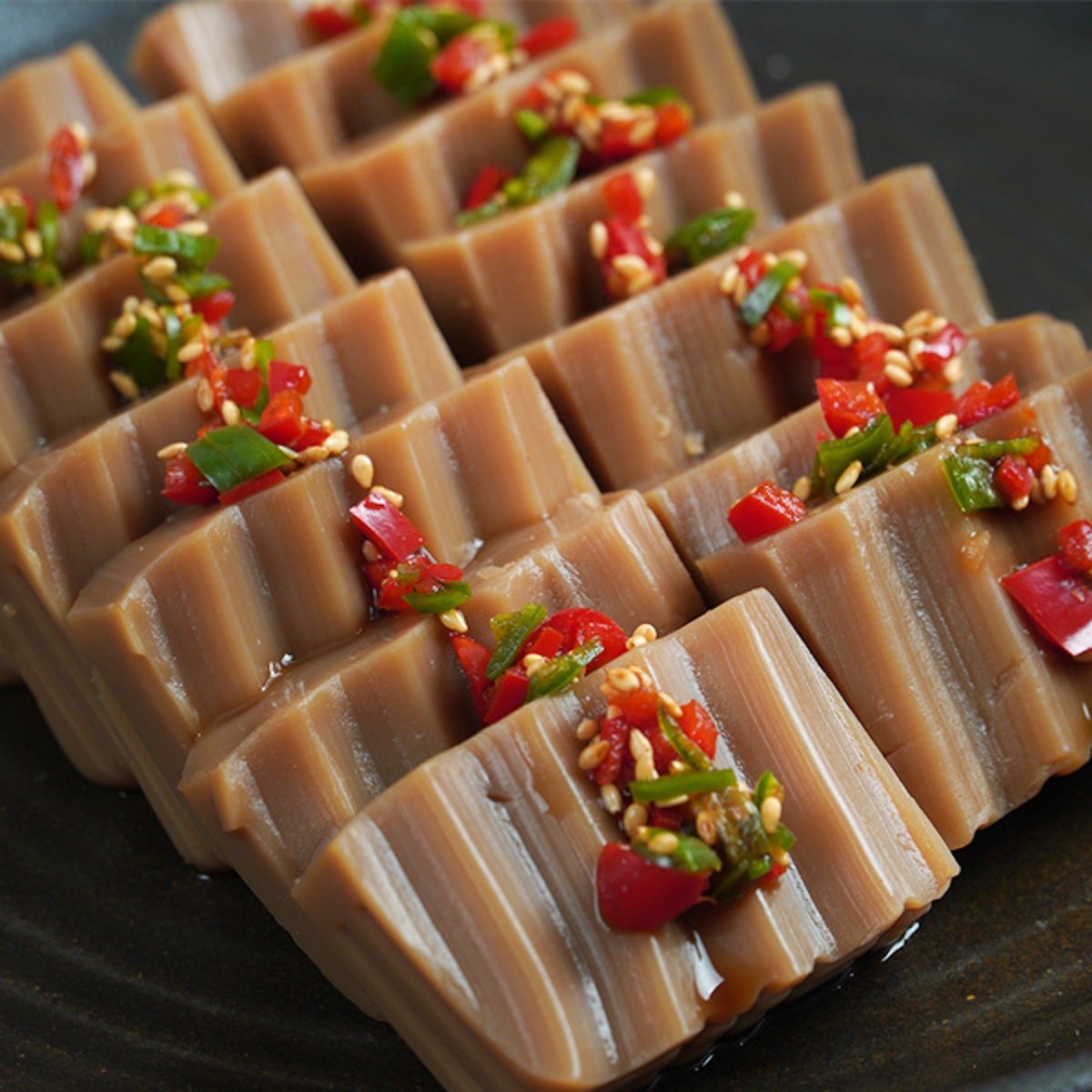 도토리묵에 곁들이는 양념장에 부추를 넣으면 부추의 알리신이 도토리묵의 비타민 B1과 만나서 혈당 관리에 시너지 효과를 낼 수 있습니다.
