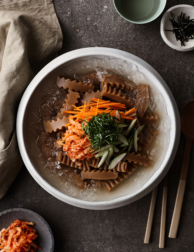여름엔 멸치육수를 시원하게 만들어 부어도 맛이 좋습니다.
