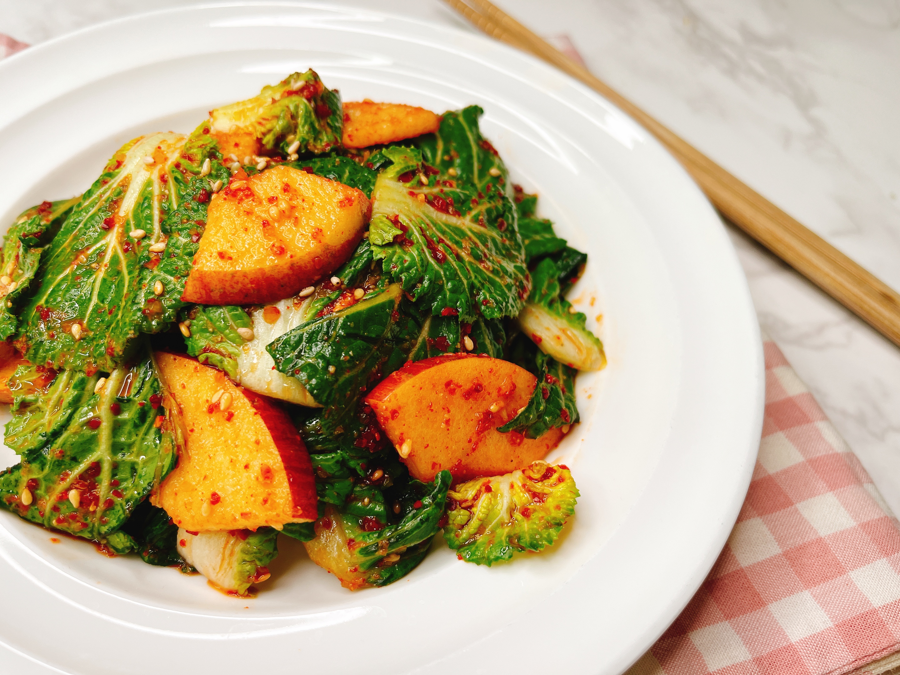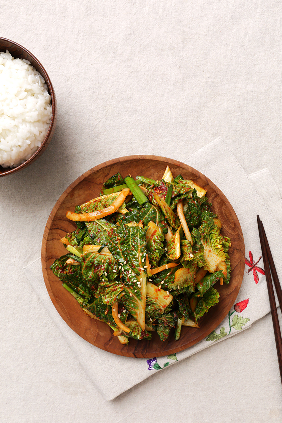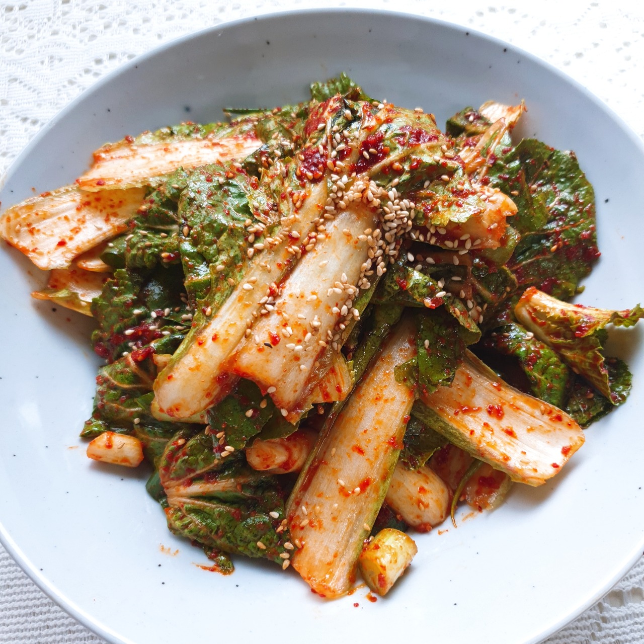 라면이나 국수를 먹을 때도 잘 어울리지만 섬유질이 풍부해서 수육이나 두부 같은 단백질 음식과는 찰떡궁합이랍니다.