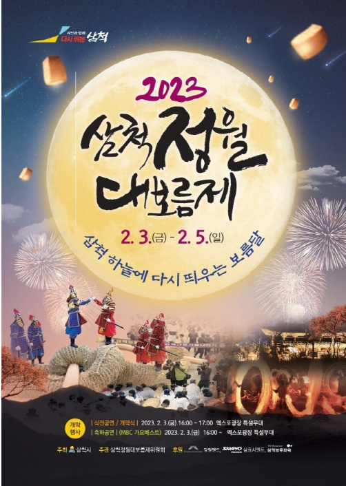삼척 정월대보름제는 정월대보름에 실시했던 삼척 특유의 줄다리기를 중심으로 초복, 풍년, 풍어를 기원하며 각종 제례 행사와 전통 민속놀이를 포함한 행사입니다. 삼척 기줄다리기는 1976년 강원도 무형문화재로 소개될 정도로 범국민축제로 발전되어 온 축제이며, 2007년부터 전국적인 행사로 전국 기줄다리기 대회가 개최되고 있을 정도입니다.