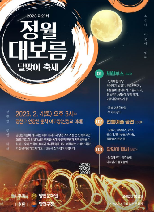 양천구에서는 2월 4일(토) 오후 3시부터 안양천 둔치 야구장에서 정월대보름 달맞이 축제가 열립니다.