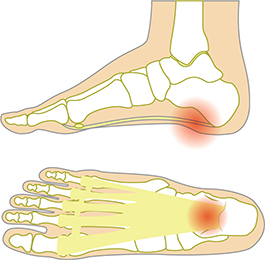 발바닥에 비정상적으로 심한 충격이나 지속적인 충격이 발생했을때, 예를 들어서 하이힐을 신고 장시간 걷기, 과도한 운동, 무리한 등산 등이 이에 해당됩니다. 발바닥에 강하고 지속적인 자극으로 인해 근육의 피하 막내 염증반응이 일어나 통증을 유발하게 됩니다.