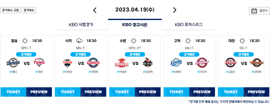 2023.04.17 - [분류 전체보기] - 2023 프로야구 순위, 일정(4월18일~23일)