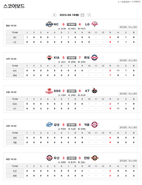 4월 18일 2023년 프로야구 결과 소식 전해드립니다.