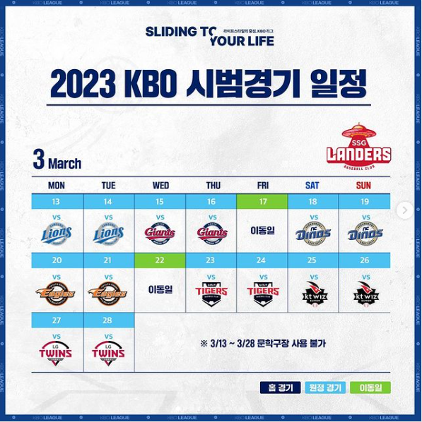 ◯ 시범경기 일정 : 2023년 3월 13일 (월) ~ 3월 28일 (화)