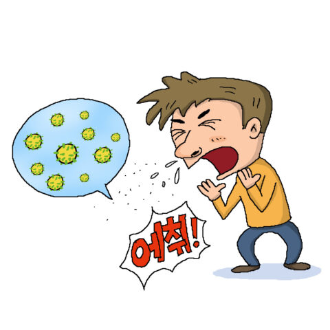 - 기침을 할 때는 손으로 가리지 말고 손수건이나 휴지 등으로 입을 가립니다.