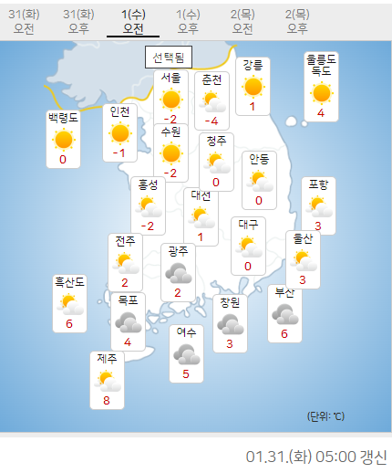 ※ 기상청 발표시각: 2023년 1월 31일(화) 04:10