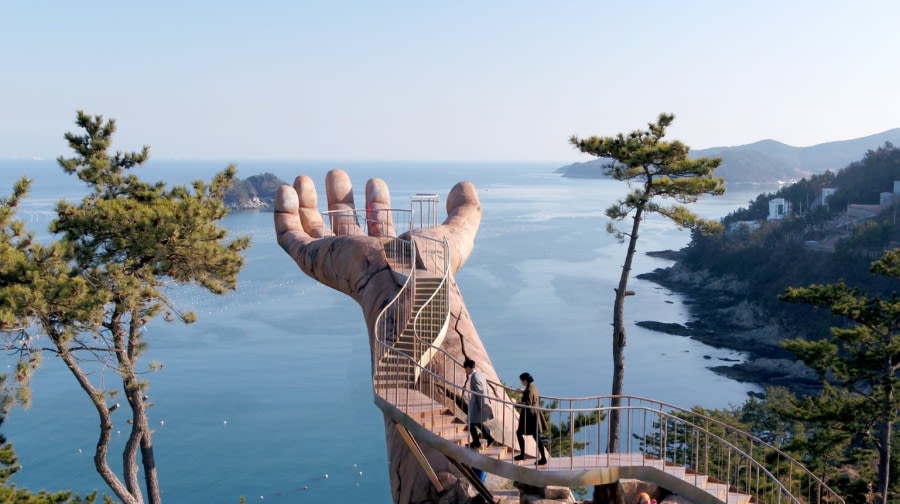 여수 예술랜드의 대표 조형물로는 남해바다를 한눈에 바라볼 수 있는 마이다스손이 있으며, 국내 최대의 3D 트릭아트 뮤지엄, 100m의 높이에서 아찔함을 느낄 수 있는 공중그네, 발 밑이 투명하게 훤히 보이는 스카이워크까지 다양한 전시물 및 체험을 할 수 있는 공간입니다.