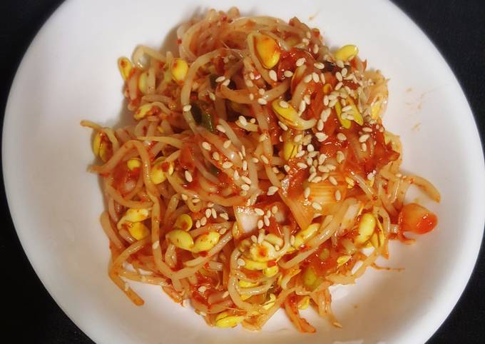 콩나물 한봉, 고추장 1큰술(수북하게), 다진 마늘 1큰술, 깨소금, 매실청 1큰술, 참기름, 통깨, 송송 썬 대파 조금