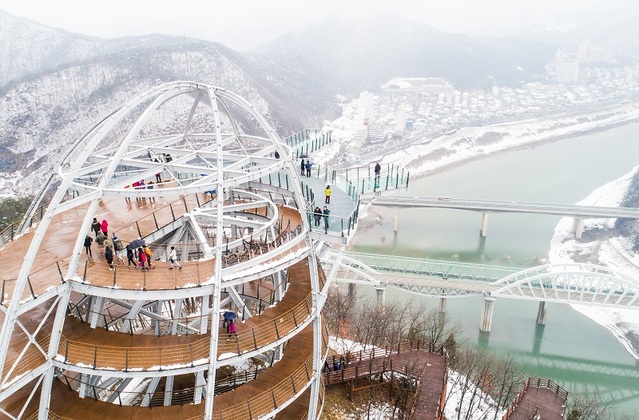 남한강에서 90m 높이에 위치한 스카이워크입니다. 신선한 바람을 맞으며 시내 전경을 볼 수가 있는 것이 특징이라고 합니다. 게다가 강 위에 있기 때문에 스릴도 있으며 남한강을 내려다보며 걸을 수가 있고 사진을 찍기에도 경관이 좋아서 많이둘 찾는 곳이라고 합니다.