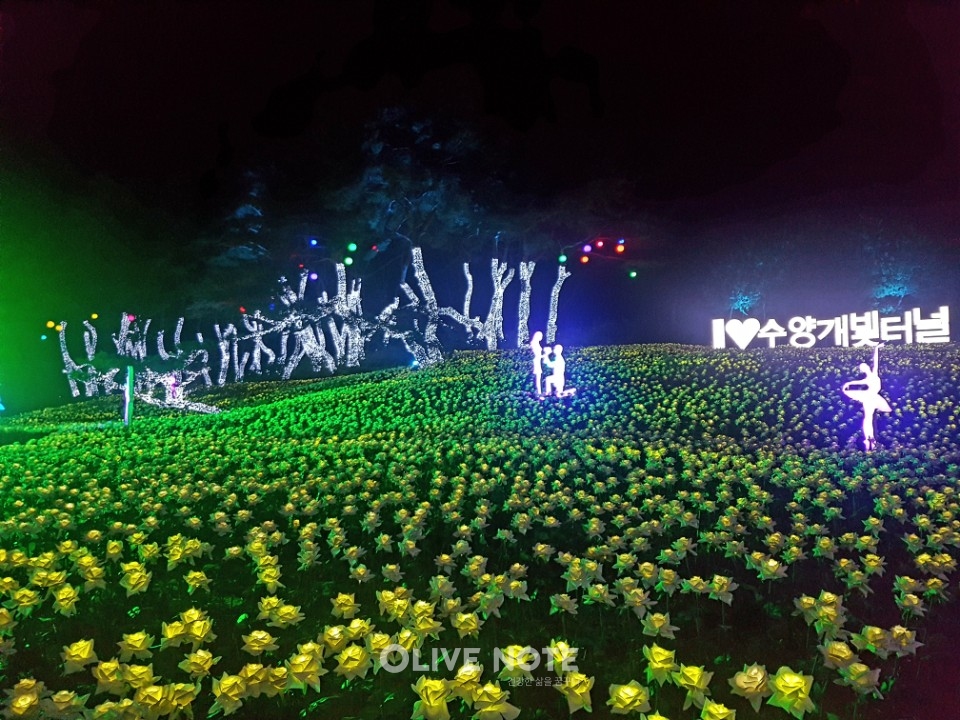 단양 수양개터널이 새로운 테마파크인 수양개빛터널로 새단장되었습니다. 터널 내부는 빛이 차단되는 장점을 최대한 활용해 고품격 음향과 시뮬레이션 영상, 조명, 4D 어트랙션 등이 합쳐진 새로운 개념의 멀티미디어 쇼가 펼쳐지며 터널 외부 공간에는 5만 송이 LED꽃 등의 일루미네이션으로 꾸며져 있습니다.