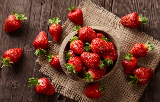 딸기에는 폴리페놀 함량이 매우 높습니다. 비타민C도 100g 중 62mg으로 풍부해 하루에 7~10알의 딸기를 먹는 것만으로 하루에 필요한 비타민 C량을 충족시킬 수 있다고 합니다.