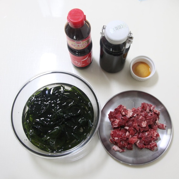 대체로 시중에 나와있는 손질된 미역은 잠시만 불려서 살짝 헹궈내고 쓰시면 됩니다.