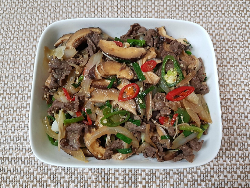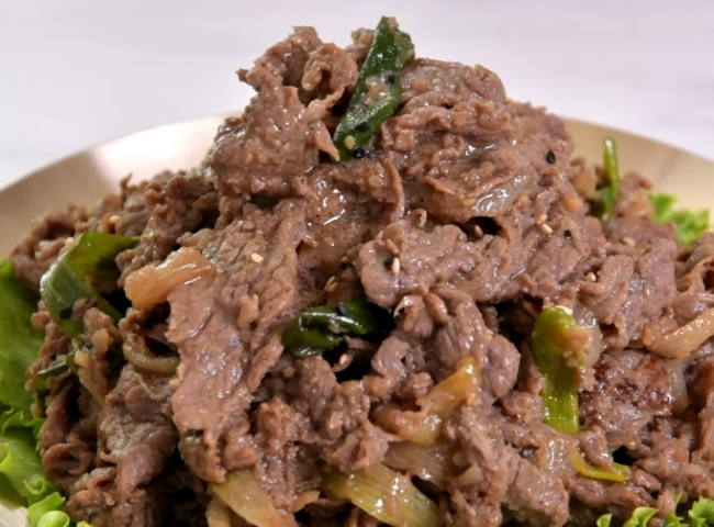 이 소금 불고기에는 양파나 버섯 등 다른 야채들을 섞지 않는 것이 더 좋습니다.