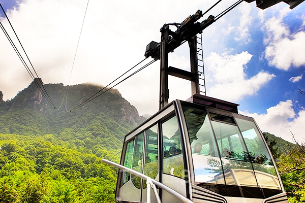 설악산의 경치를 가볍게 감상하는 가장 좋은 방법은 설악케이블카를 이용하는 것입니다. 케이블카 탑승장은 설악산 국립공원 소공원에 위치해 있으며 해발 700m 권금성까지 10분 정도 걸립니다. 편도 접근이 불가능하기 때문에 왕복 티켓을 지불해야 합니다. 케이블카를 타고 가는 길에도 창문을 통해 울산바위와 만물상과 같은 유명한 명소를 즐길 수 있습니다. 권금성에 도착하면 설악산의 웅장한 산맥이 파노라마처럼 펼쳐집니다.