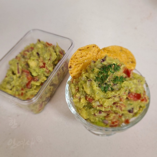 멕시코음식으로 유명한 과카몰리는 아보카도를 이용하여 만드는 음식입니다. 으깬 아보카도와 잘게 썬 토마토, 양파, 다진 마늘, 레몬즙, 소금, 후추를 넣어 잘 비벼주면 과카몰리가 됩니다. 나초나 크래커 등과 함께 곁들여도 되고 빵에 발라서 먹어도 맛있습니다.