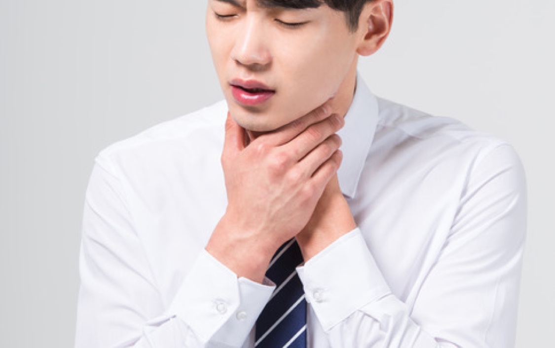목 이물감 또한 역류성 식도염의 대표적인 증상 중 하나입니다. 목에 마치 뭔가 걸린 것처럼 침을 삼킬 때마다 걸립니다. 식사 중에는 비교적 괜찮지만 때때로 음식물을 삼키기 힘들 수도 있습니다. 또 증상이 심해지면 목이 너무 부어서 숨이 막히는 느낌까지 들기도 합니다. 역류성 식도염은 후두염을 유발하기도 합니다. 따라서 목에 이물감이 들고 목소리에 변화가 생기기도 합니다.