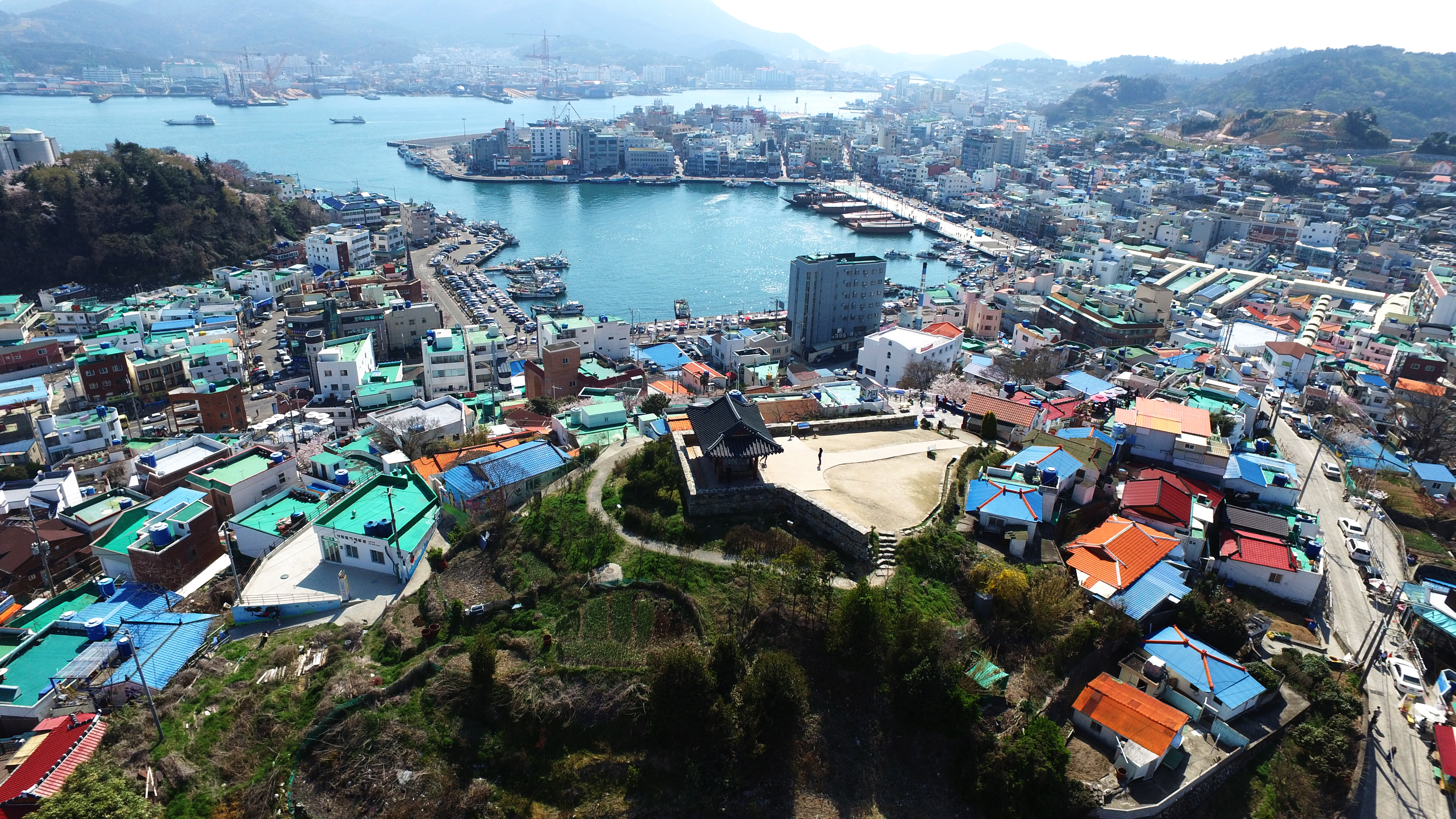 원래 동피랑 마을은 중앙시장 뒤편에 있는 언덕에 형성된 낙후된 마을이었습니다. 원래는 마을을 철거하고 충무공의 통제영 동포루를 복원하려 하였습니다.